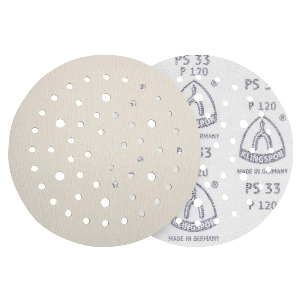 The PS 33 Abrasive Disc is perfect for sanding where loading is a problem. With stearate and semi-open coating, the aluminum oxide grain is durable and prohibits loading, thus extending service life and maintaining a high removal rate. Although strong, this abrasive remains flexible, perfectly contouring to the surface to be finished. PS 33 abrasives are highly recommended for bare wood sanding, autobody use, sanding of bare metal, primer, primer surfacer, between coats of paint, and sanding of solid surface materials. It is also excellent for fiberglass, varnish, plastic, and rubber.