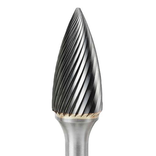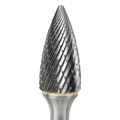 SG51 Tree Shape Pointed End Carbide Burr 1/4"x 1/2"x 1/8" Shank x 2" OAL, Single Cut
