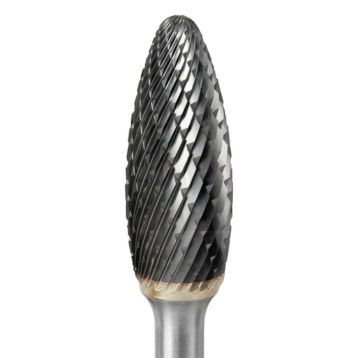 SG7 Tree Shape Pointed End Carbide Burr 3/4"x 1"x 1/4" Shank x 2-3/4" OAL, Single Cut