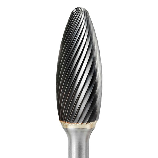 SH41L3 Flame Shape Carbide Burr 1/8"x 1/4"x 1/8" Shank x 3" OAL, Single Cut