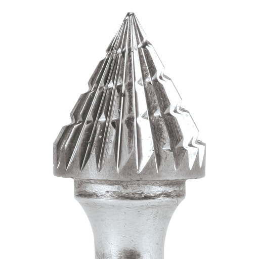 SJ7 Cone Shape Carbide Burr 3/4"x 11/16"x 1/4" Shank x 2-5/9" OAL, Double Cut, 60 Degrees