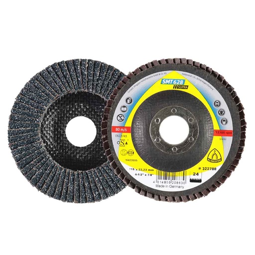 SMT628 Supra Flap Disc, Alumina Zirconia, 24 Grit, 4.5"x 7/8"