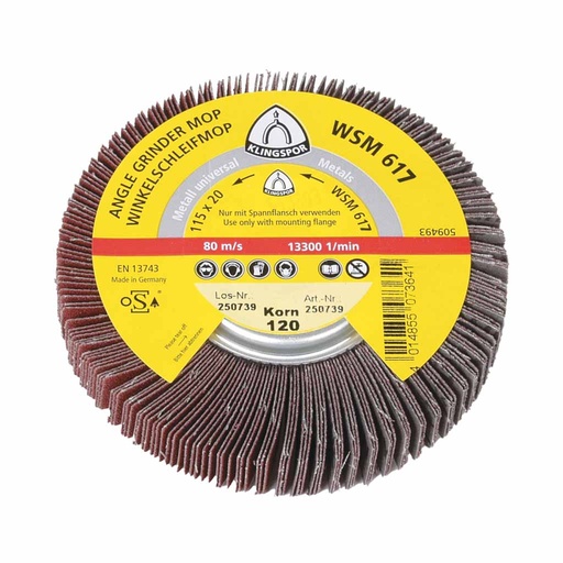 WSM617 Flapwheel: 120 Grit, 4-1/2"x 3/4"x 5/8"-11 Thread