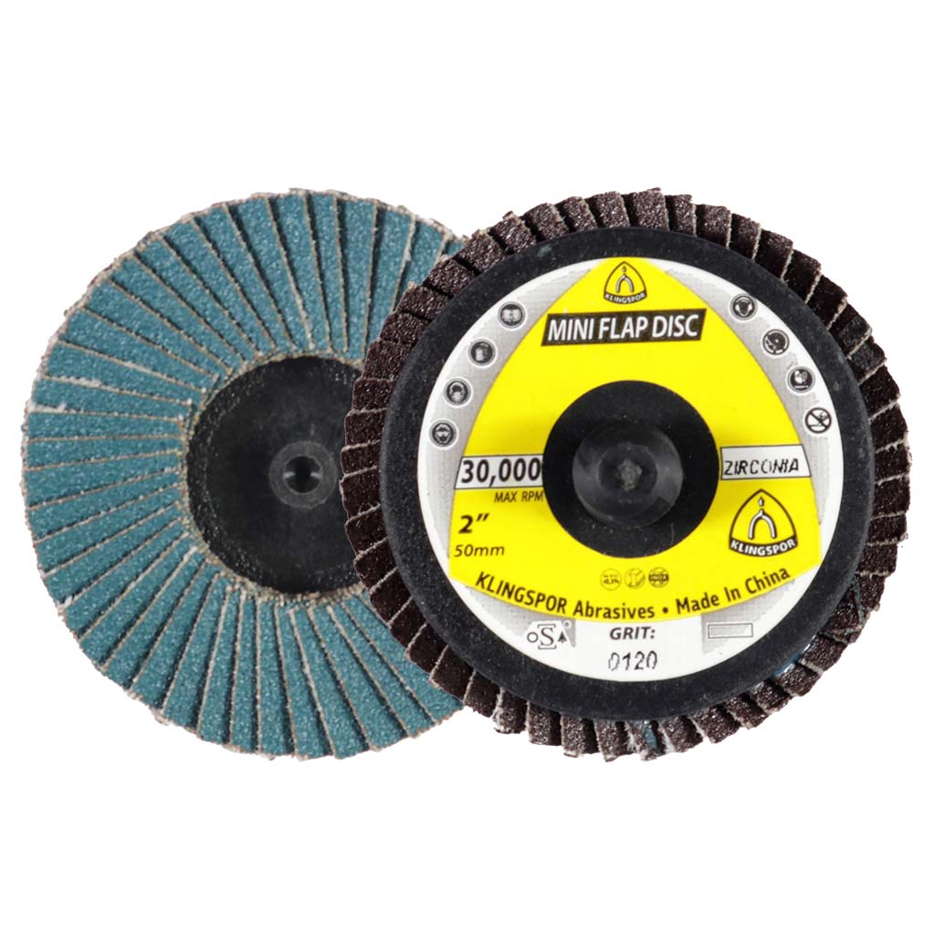 Mini Flap Discs are ideal for removal and blending in tight hard-to-reach areas. These are offered in a QRC disc (quick roll connect) for fast and convenient changeover. Alumina zirconia is a durable, aggressive grain for steel and stainless steel applications. Quick Change Discs are disposable discs with various backing and attachment methods. They offer instant disc changes and assure smooth running. Shifting on the machine is not a concern for these discs, always remaining centered. Quick change discs are even resistant to grinding heat and have a long service life. These products work well on flat surfaces, contoured surfaces, and in tight areas.
