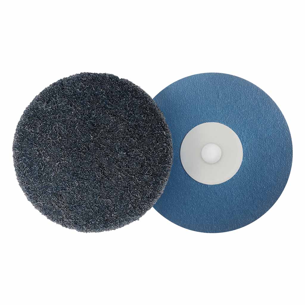 Quick roll connect discs, or QRCs, have a common male hub directly on the disc back which mounts easily into KLINGSPOR's Quick Roll Connect holder pad or into the popular Roloc® holder pad. Non-woven scrim back is ideal for light material removal and deburring.